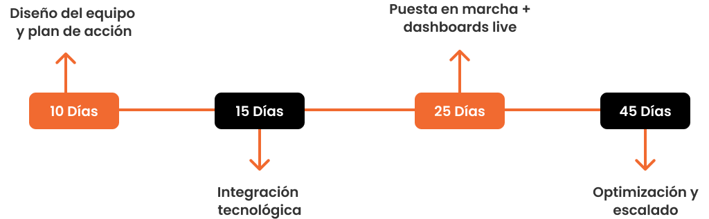 Brindamos equipos reducidos con líderes comprometidos. Cada squad de 8 a 10 personas , tiene un líder asignado para garantizar la performance de tus resultados.